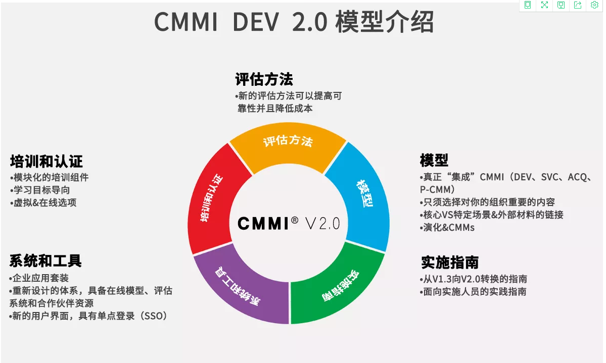 CMMI能力成熟度模型集成。CMMI是CMM模型的最新版本。早期的CMMI ( CMMI-SE/SW/IPPD ),SEI在部分國(guó)家和地區(qū)開(kāi)始推廣和試用。隨著應(yīng)用的推廣與模型本身的發(fā)展,演繹成為一種被廣泛應(yīng)用的綜合性模型。CMMI全稱(chēng)是Capability Maturity Model Integration, 即軟件能力成熟度模型集成,是由美國(guó)國(guó)防部與卡內(nèi)基-梅隆大學(xué)和美國(guó)國(guó)防工業(yè)協(xié)會(huì)共同開(kāi)發(fā)和研制的,其目的是幫助軟件企業(yè)對(duì)軟件工程過(guò)程進(jìn)行管理和改進(jìn),增強(qiáng)開(kāi)發(fā)與改進(jìn)能力,從而能按時(shí)地、不超預(yù)算地開(kāi)發(fā)出高質(zhì)量的軟件。其所依據(jù)的想法是:只要集中精力持續(xù)努力去建立有效的軟件工程過(guò)程的基礎(chǔ)結(jié)構(gòu),不斷進(jìn)行管理的實(shí)踐和過(guò)程的改進(jìn),就可以克服軟件開(kāi)發(fā)中的困難。CMMI為改進(jìn)一個(gè)組織的各種過(guò)程提供了一個(gè)單一的集成化框架,新的集成模型框架消除了各個(gè)模型的不一致性,減少了模型間的重復(fù),增加透明度和理解,建立了一個(gè)自動(dòng)的、可擴(kuò)展的框架。因而能夠從總體上改進(jìn)組織的質(zhì)量和效率。CMMI主要關(guān)注點(diǎn)就是成本效益、明確重點(diǎn)、過(guò)程集中和靈活性四個(gè)方面。