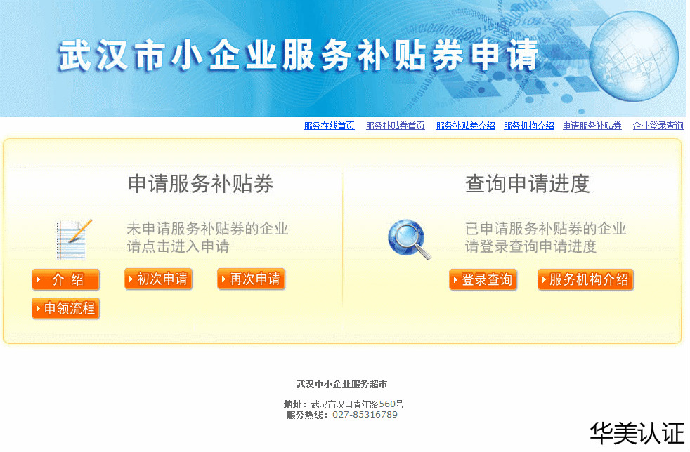 具體流程也是非常方便簡單的喲!只需在申請服務補貼劵的企業(yè)點擊“初次申請”,然后按照步驟依次填寫企業(yè)相關信息,之后選擇一家認證咨詢機構簽訂合同(華美認證咨詢公司從事這方面咨詢服務已有13年之久,經(jīng)驗豐富),最后只需憑合同,企業(yè)營業(yè)執(zhí)照,稅務登記照,組織機構代碼等證件照到指定位置核實領券即可。